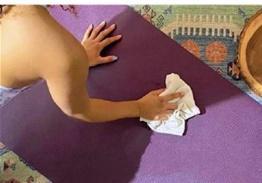 正确的做法是将两滴洗洁精兑4碗水,喷洒在瑜伽垫上,然后用干布擦净,放在阴凉或有少许阳光处晾晒。