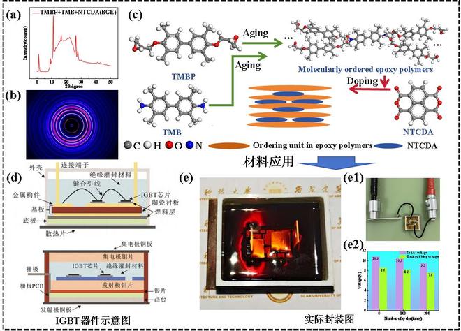 该团队巧妙选用有机分子作为“模板”,诱导环氧树脂体系形成高度有序的分子结构。这种结构如同为热量传递修建了“高速路”,显著提升了导热率;同时,致密的分子堆叠与深能级陷阱能有效“束缚”高能电子,从而在高温下仍保持强大的绝缘能力,尤其在 200℃这样的高温工况仍然可靠。