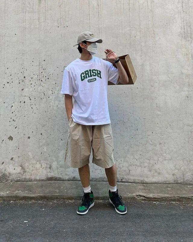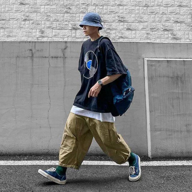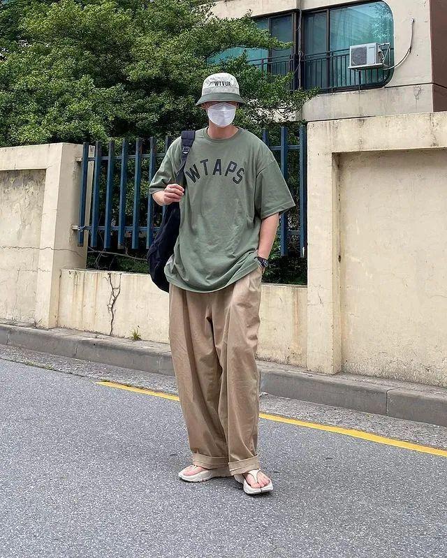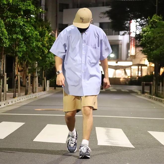 很多伙伴更爱卡其裤,追求散热效果好,视觉表现起来就很松垮,带有一种慵懒感。这种还可以和格纹衬衫组合,在大学中很常见。